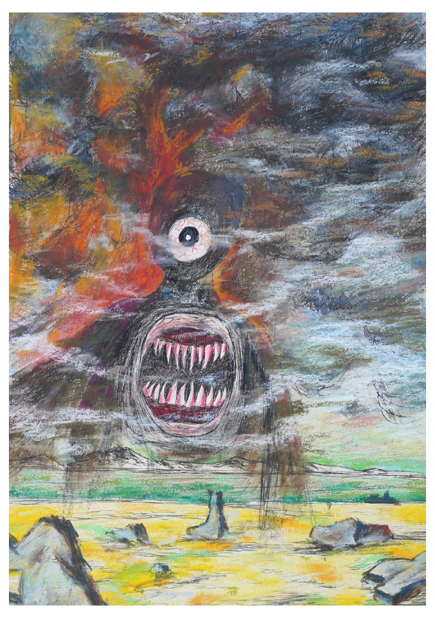 폐허가 된 도시유적과 기괴한 모양의 괴생명체가 함께 등장하는 작품은 그 자체로 그로테스크한 풍경을 보여준다.